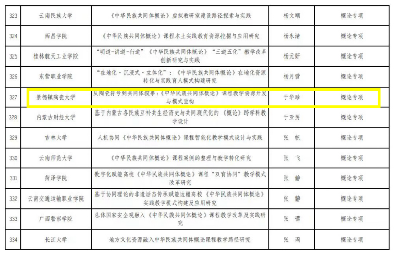 近日,国家民委科研项目管理办公室依据《国家民委科研项目管理办法》等文件要求,经推荐、初审、通讯评审、会议评审等多环节严格遴选,正式公布2025年度国家民委高等教育教学改革研究项目立项名单,全国共360项项目通过评审。其中,我院于华珍副教授主持的“从陶瓷符号到共同体叙事:《中华民族共同体概论》课程教学资源开发与模式重构”项目成功获批,标志着我院在《中华民族共同体概论》课程教学改革领域取得新突破。