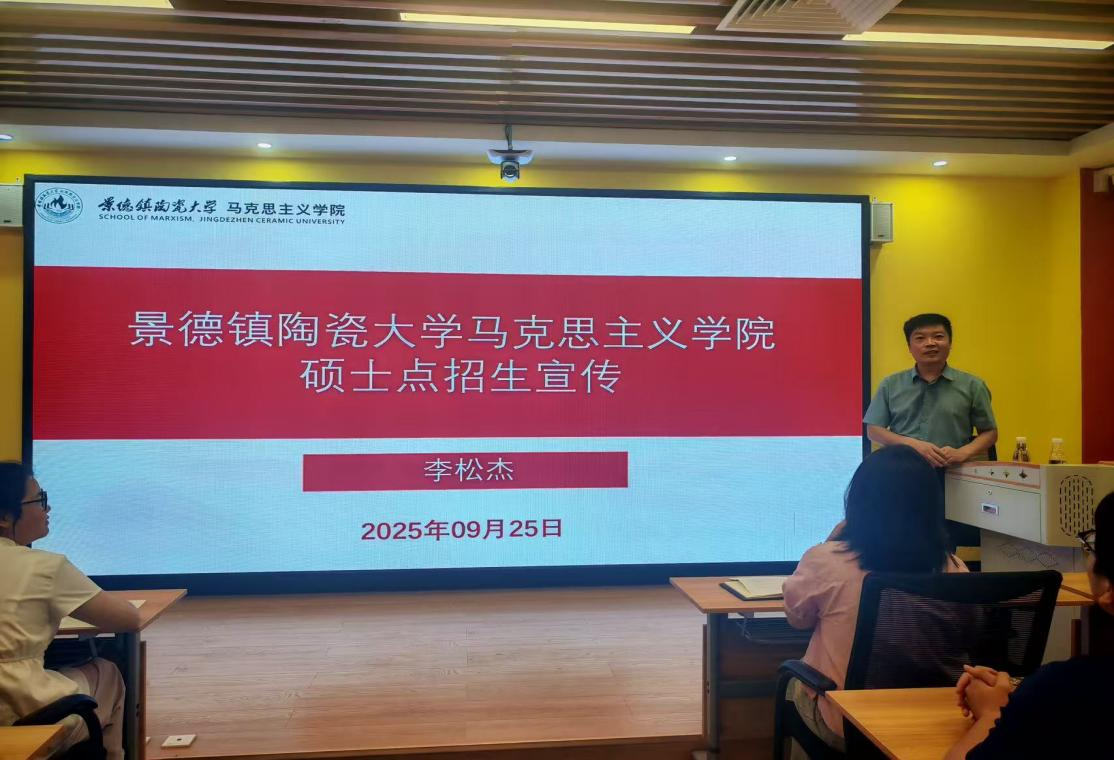 9月28日上午9点,我院在景德镇学院马克思主义学院2楼VR实训室举办2026年硕士研究生招生宣讲会。本次宣讲由我院李松杰副院长主讲,景德镇学院院长曹志瑜及70余名学生到场参与。