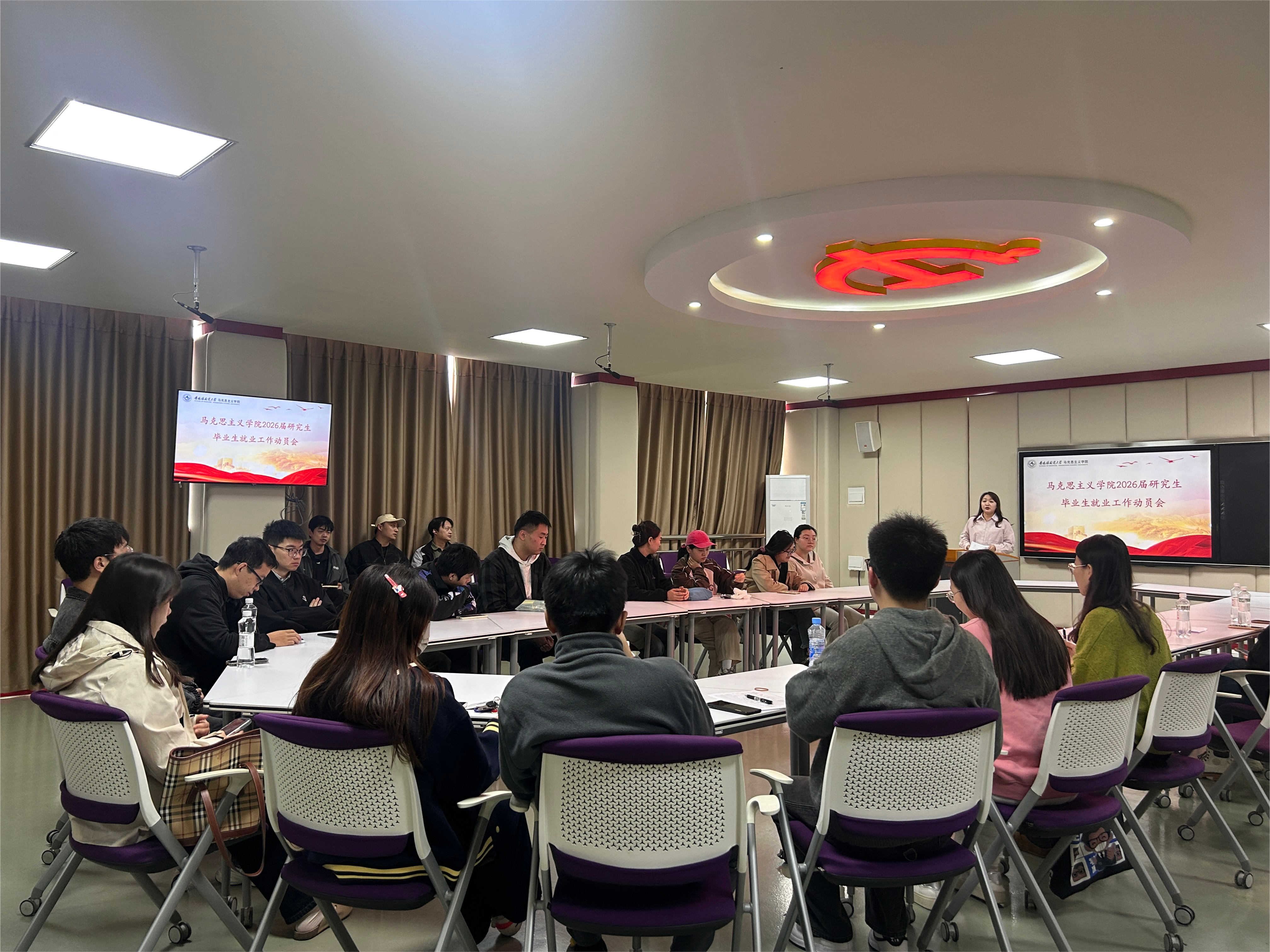 为深入贯彻落实国家关于高校毕业生就业工作的决策部署,进一步加强就业指导与服务,引导学生树立正确的职业观、就业观和择业观,提升就业竞争力,推动实现更高质量更充分就业,近日,马克思主义学院在勤学楼611智慧思政教室组织召开2026届毕业研究生就业工作动员会。学院党委副书记、纪委书记王惠玲出席会议并作动员讲话,2026届全体毕业研究生参加。