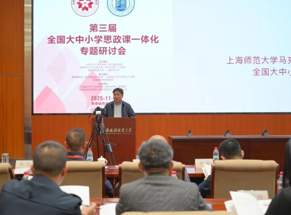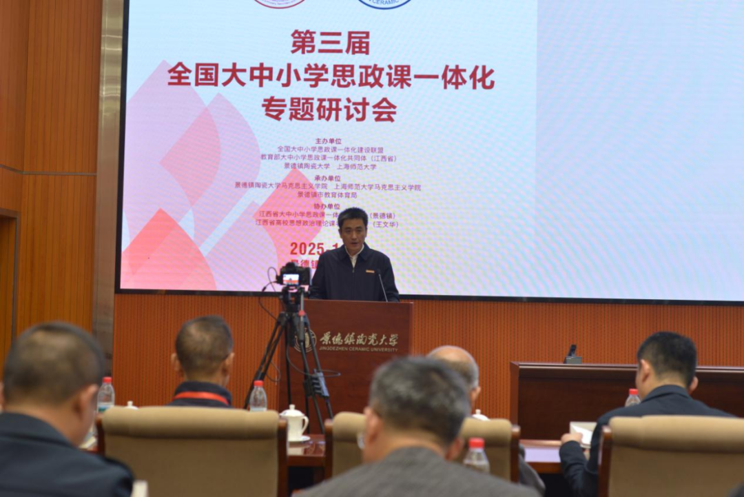 据悉,本次论坛聚焦“如何优化大中小学思政课一体化课程实施和教材使用”这一主题,围绕大中小学思政课一体化建设的关键问题,交流经验、分享成果、凝聚共识,旨在共同探讨新时代推动思政课内涵式发展、提升立德树人实效的创新路径与协同机制。本次论坛由全国大中小学思政课一体化建设联盟、教育部大中小学思政课一体化共同体(江西省)、景德镇陶瓷大学、上海师范大学联合主办,景德镇陶瓷大学马克思主义学院、上海师范大学马克思主义学院、景德镇市教育体育局共同承办,江西省大中小学思政课一体化共同体(景德镇)、江西省高校思想政治理论课名师工作室(王文华)协办。