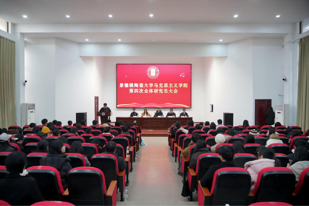 2025年12月26日上午,景德镇陶瓷大学马克思主义学院第四次全体研究生大会在湘湖校区多功能报告厅召开。学院党委书记吴晟,党委副书记、院长王文华,党委副书记、纪委书记王惠玲,校研究生会轮值主席郭海云、设计艺术学院研究生会轮值主席张柳娜出席会议,马克思主义学院全体研究生参加会议。开幕式由学院辅导员王子扬主持。