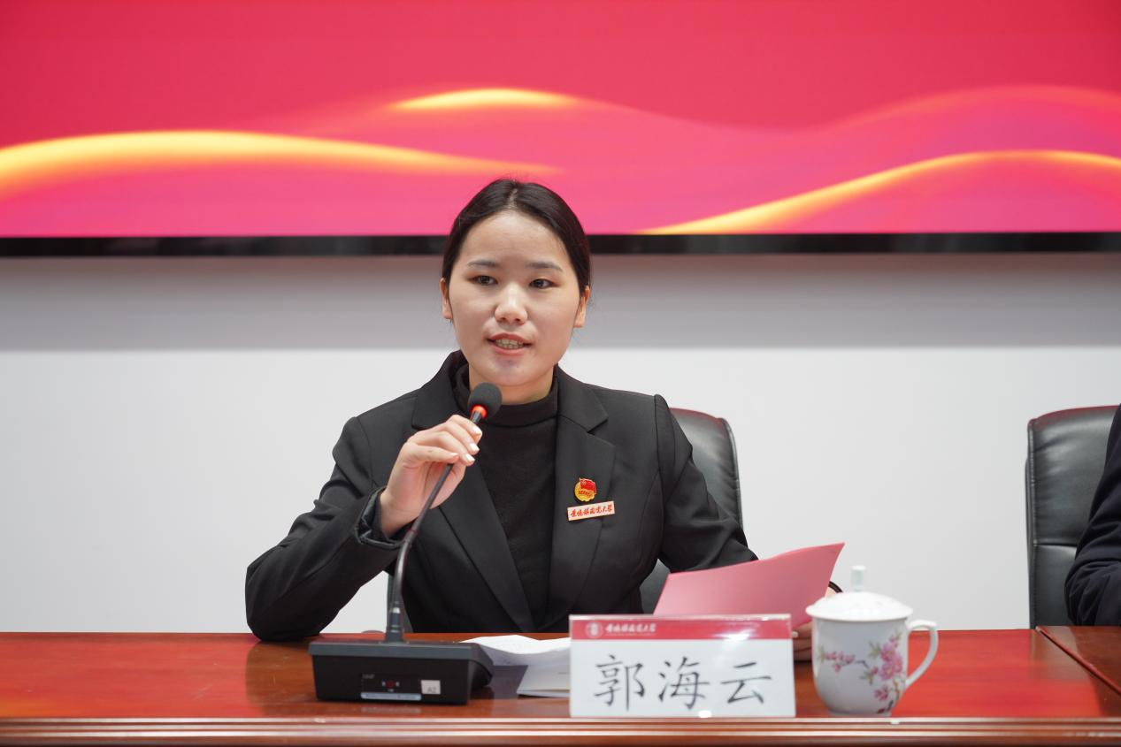 新一届研究生会代表杨玲作表态发言。她感谢全体代表的信任与支持,并表示新一届研究生会必将牢记服务宗旨,继承传统,团结协作,加强自身建设,密切联系同学,努力开创工作新局面。