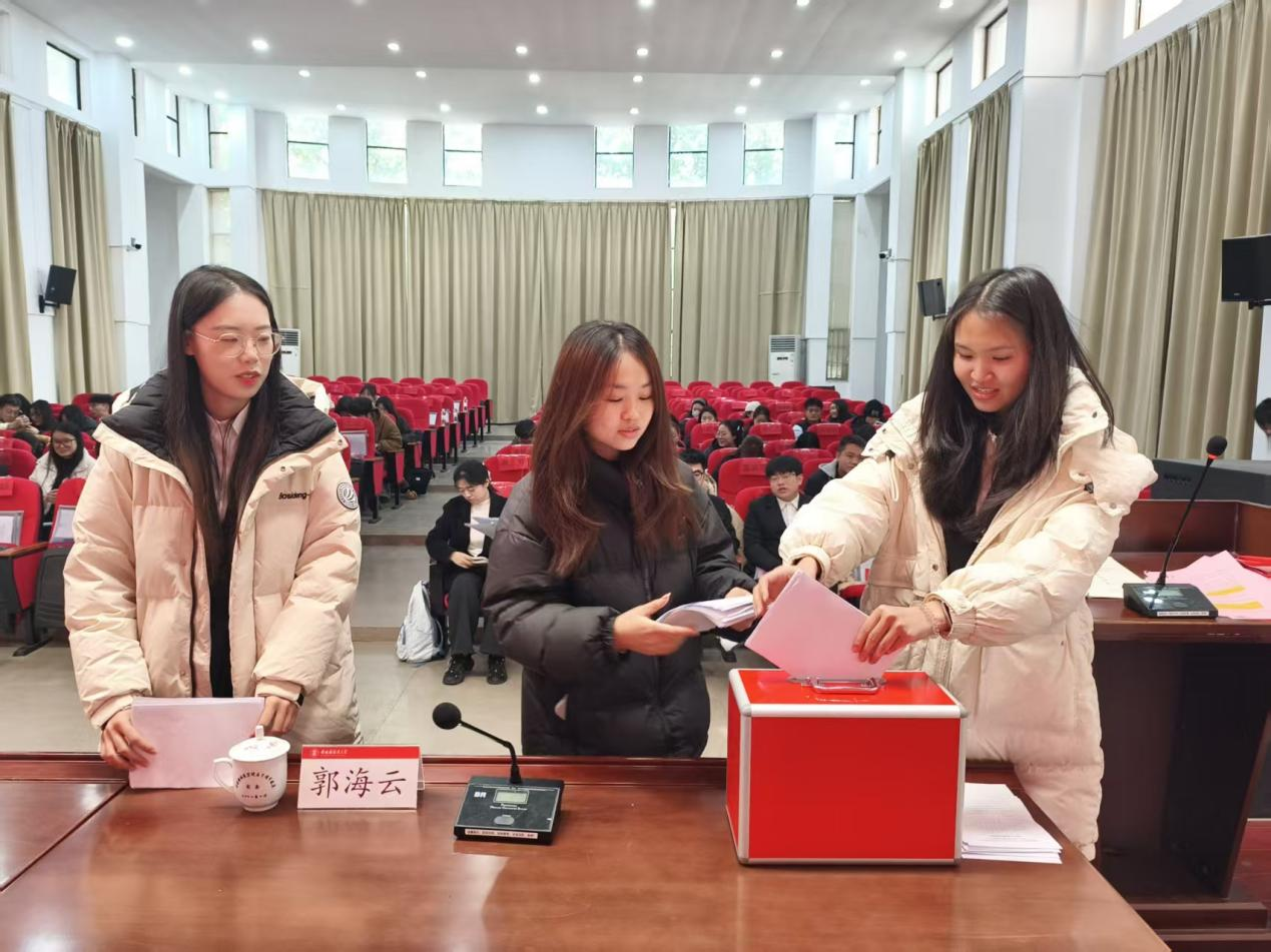 与会代表以无记名投票方式,选举产生学院第四届研究生委员会委员,并进行景德镇陶瓷大学马克思主义学院研究生会会旗交接仪式。